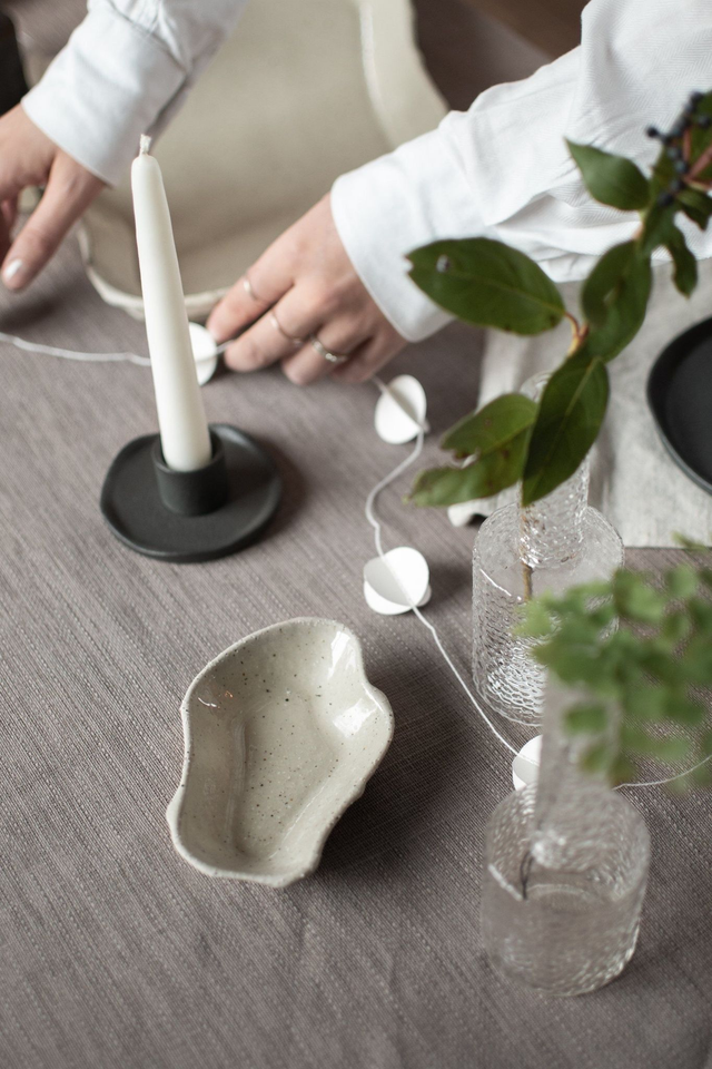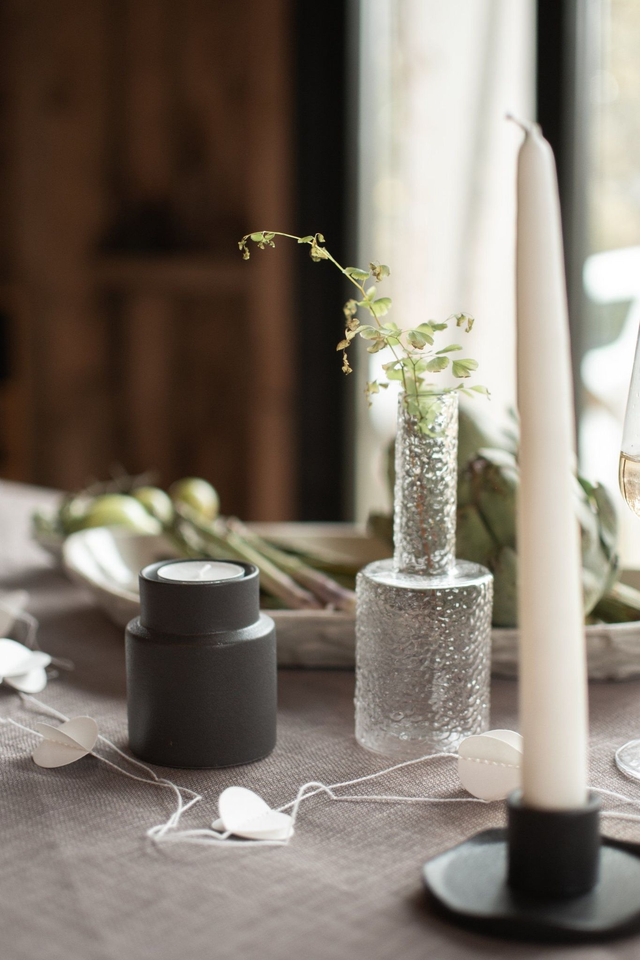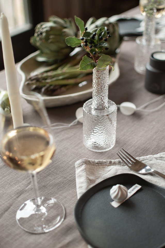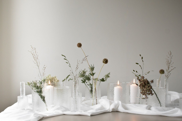 Mein Tipp: die schönen Glasvasen auf dem Esstisch auf einem Tischläufer gemeinsam mit Trockenblumen dekorieren