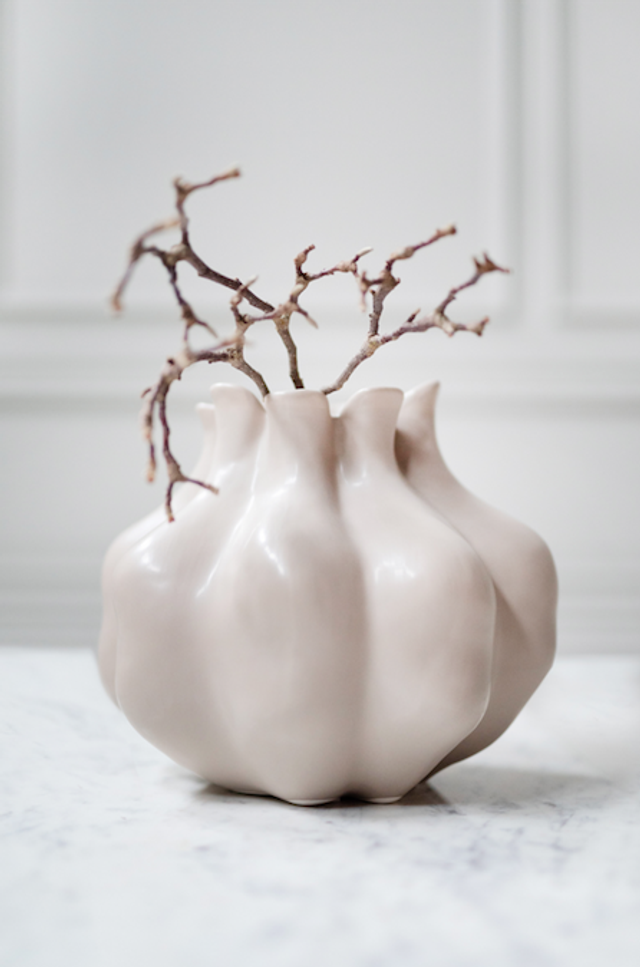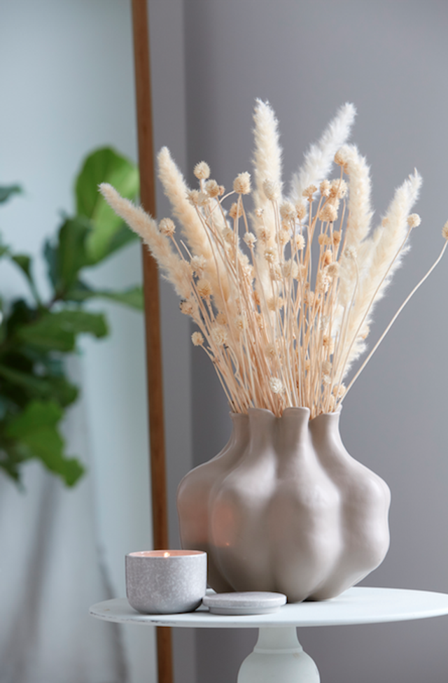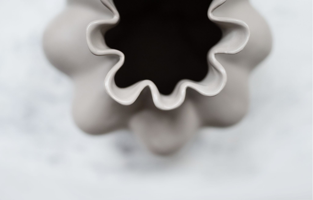 Besonders schöne Vase für Schnittblumen, da die einzelnen Stiele sich wunderbar in die organische Form einschmiegen. Der Kalkstein ist besonders beständig und hart und fühlt sich sehr angenehm an.